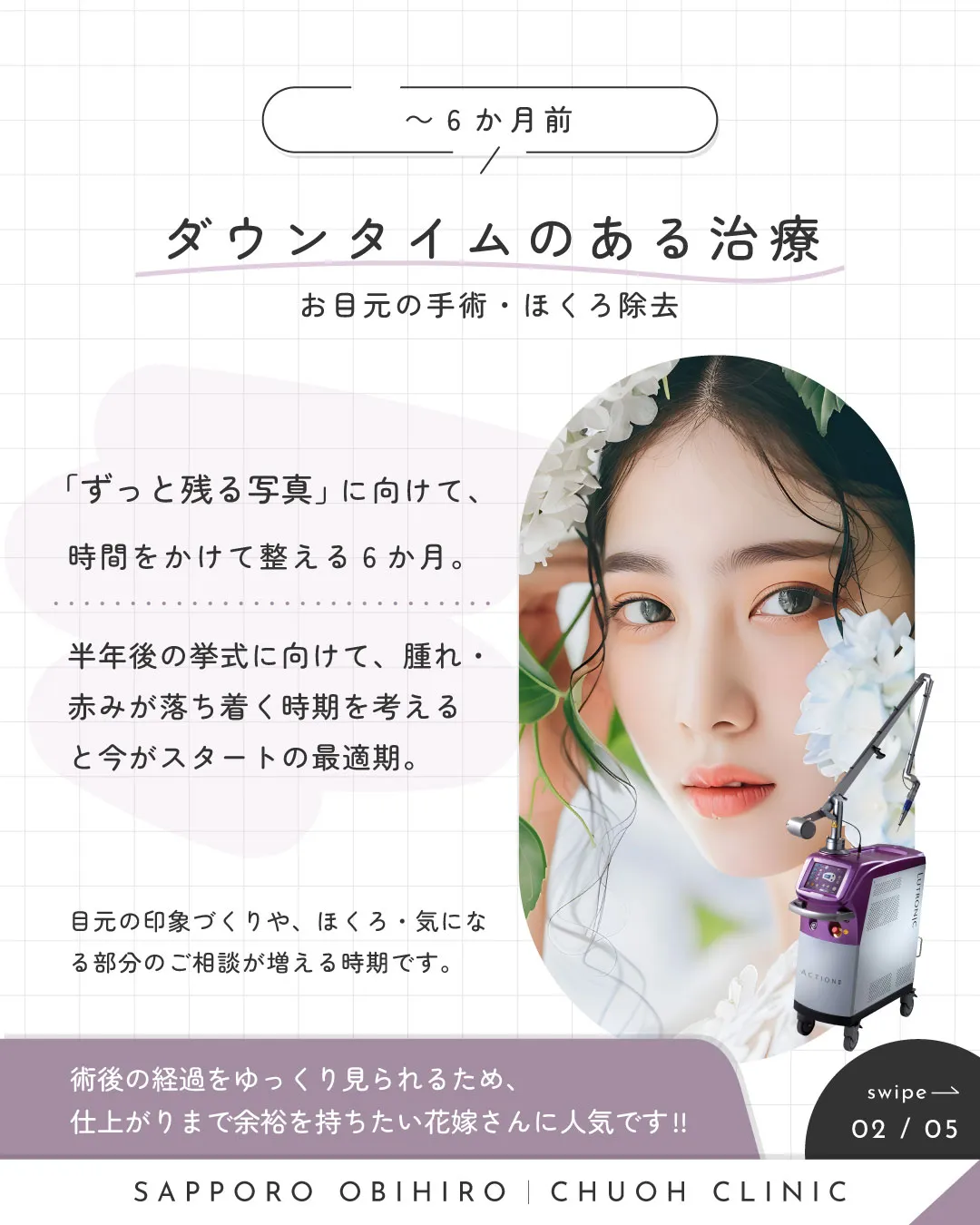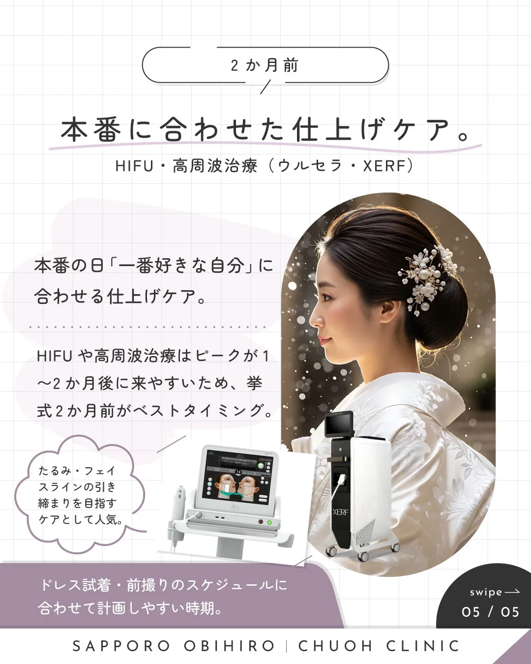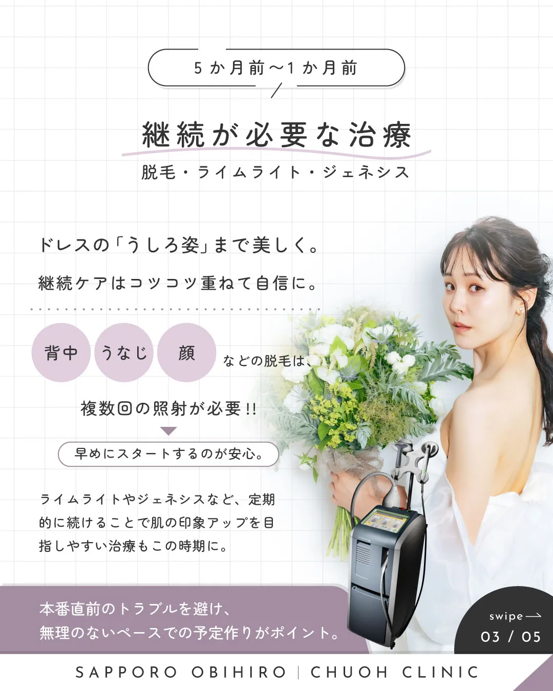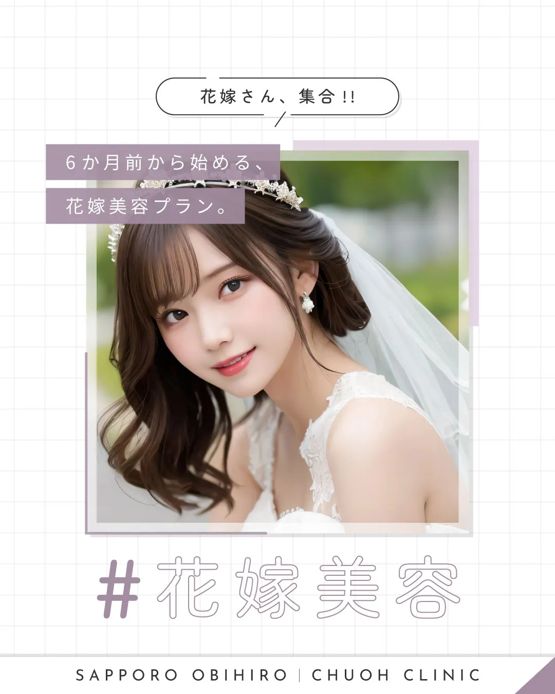 ブライダル向けの花嫁美容プランということで、20〜30代の花嫁さまをターゲットに、プランの流れが一目でわかるよう整理しました。全体は上品さと安心感を大切にしつつ、おしゃれで特別感のある雰囲気に仕上げています。